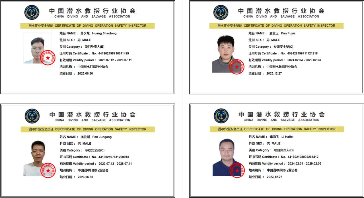 中国潜水救捞行业协会--潜水作业安全员证书