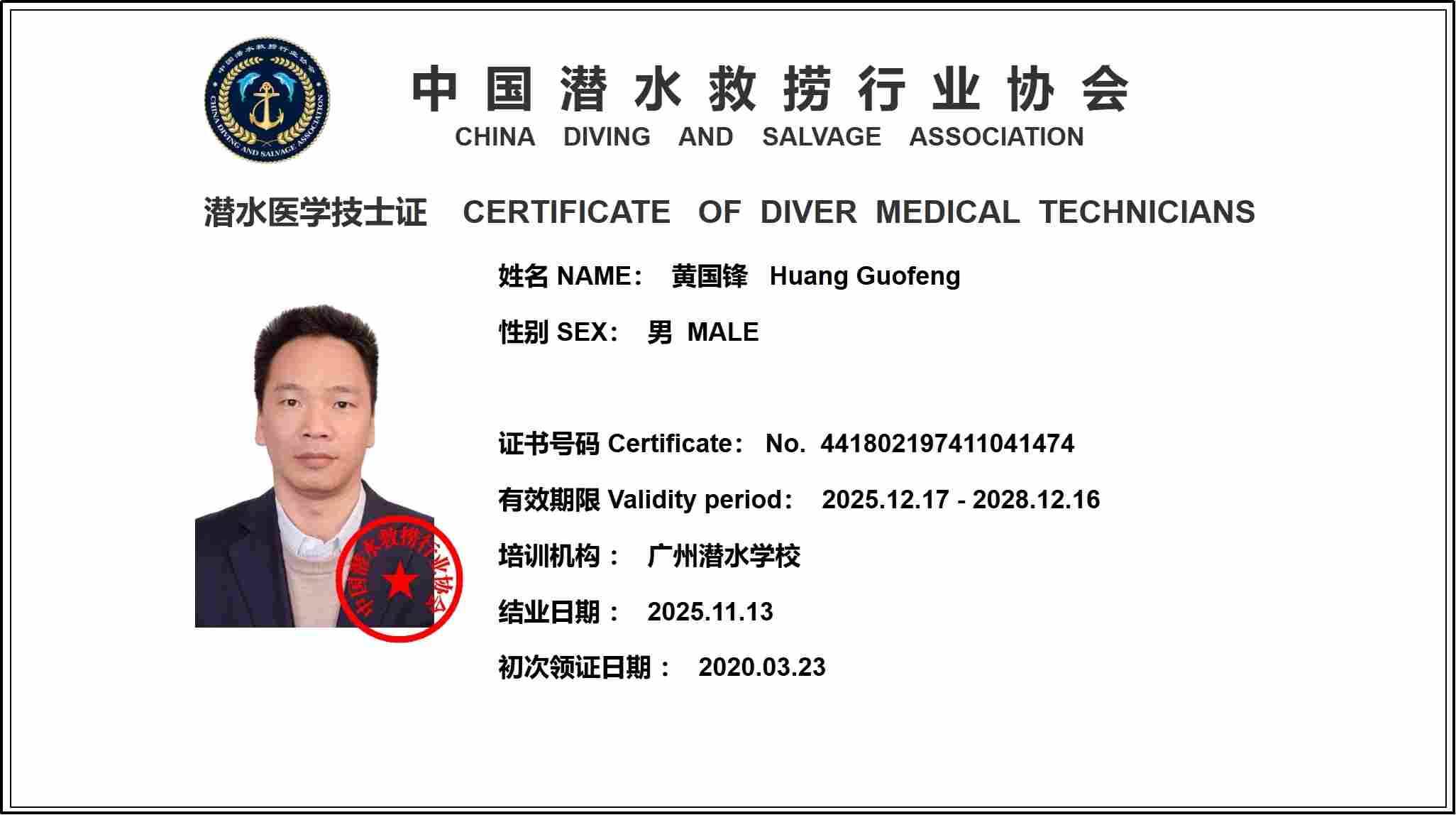 中国潜水救捞行业协会--潜水医学技士证书